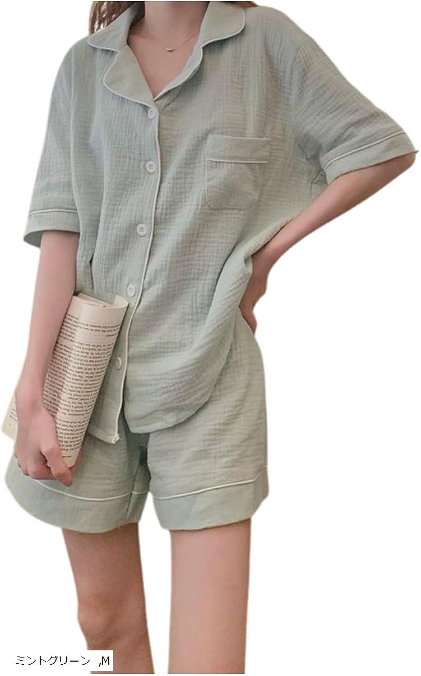 ルームウェア レディース 半袖パジャマ セットアップ 快適ガーゼ風コットン 薄手 軽量 吸汗速乾 おうち時間 リラックスウェア ナイトウェア 可愛い(ミントグリーン, M)