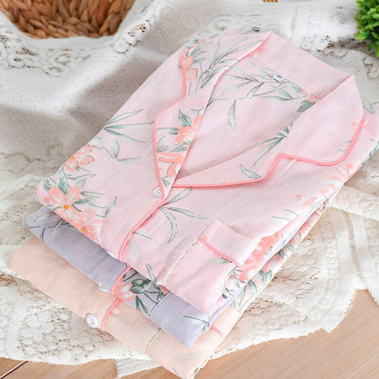 長袖パジャマ 前開き 純綿ルームウェア 上下セット花柄 パジャマ