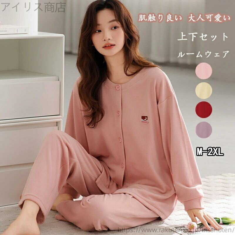 部屋着 長ズボン トップス 長袖 プルオーバー 前開き 厚手 ラウ