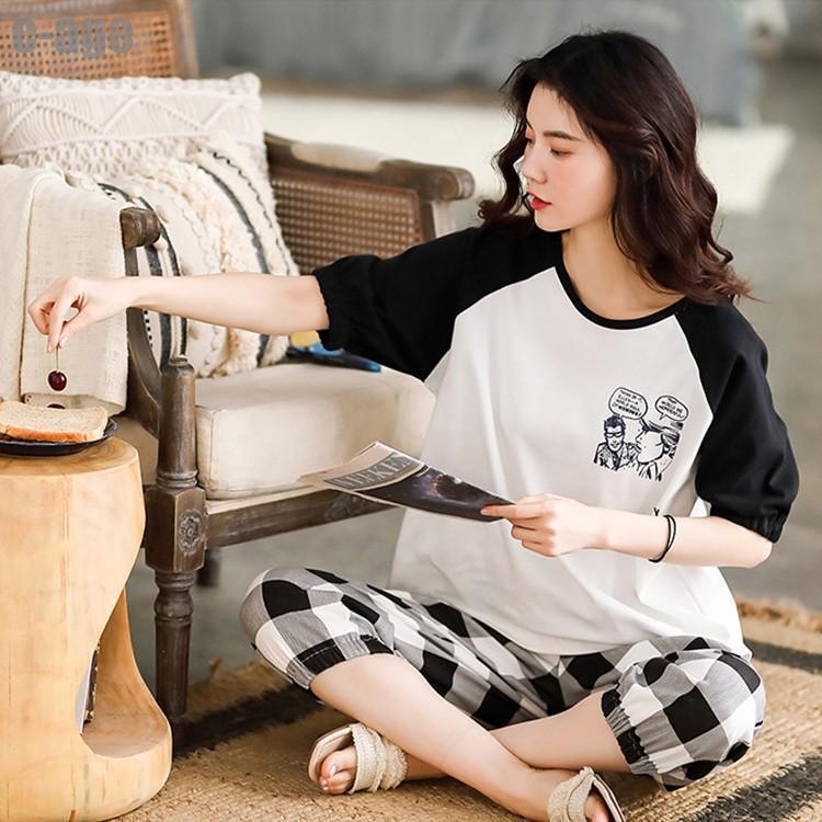 パジャマ ルームウェア レディース 春 夏 半袖 パジャマ 綿 ルームウェア チェック柄 上下セット 可愛い 韓国風 オシャレ 女性 部屋着 寝巻き ゆったり