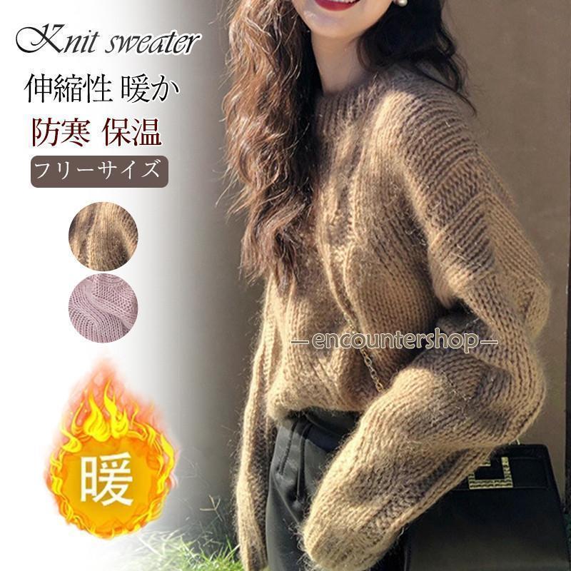 ニットセーター レディース ニット クルーネック プルオーバー ケーブルニット 長袖 ゆったり ルーズ レトロ 暖か 防寒 秋冬 可愛い おしゃれ