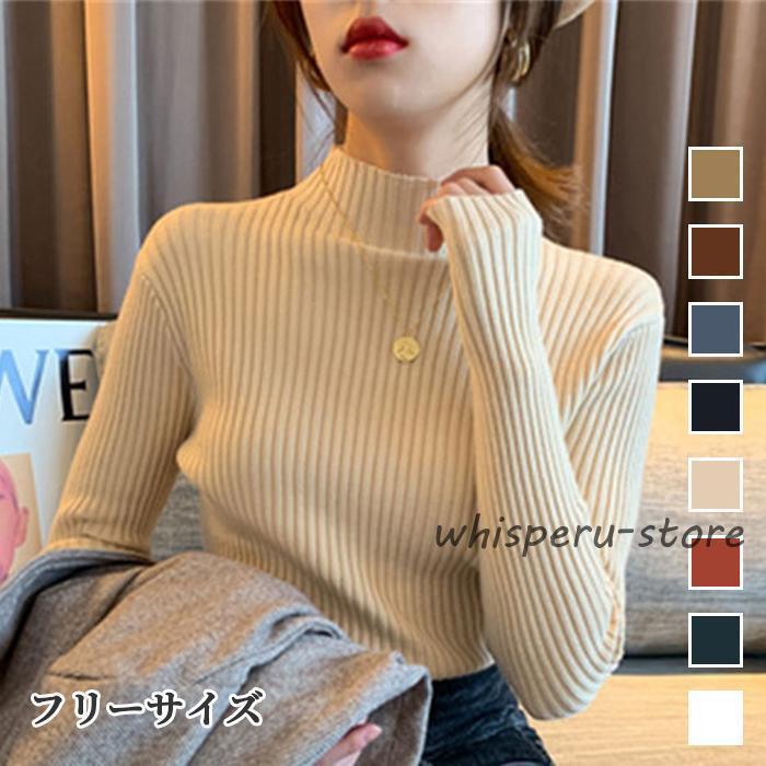 ニット ハイネック レディース 在庫限り リブニット 長袖 トップス セーター 無地 カジュアル トータルネック シンプル