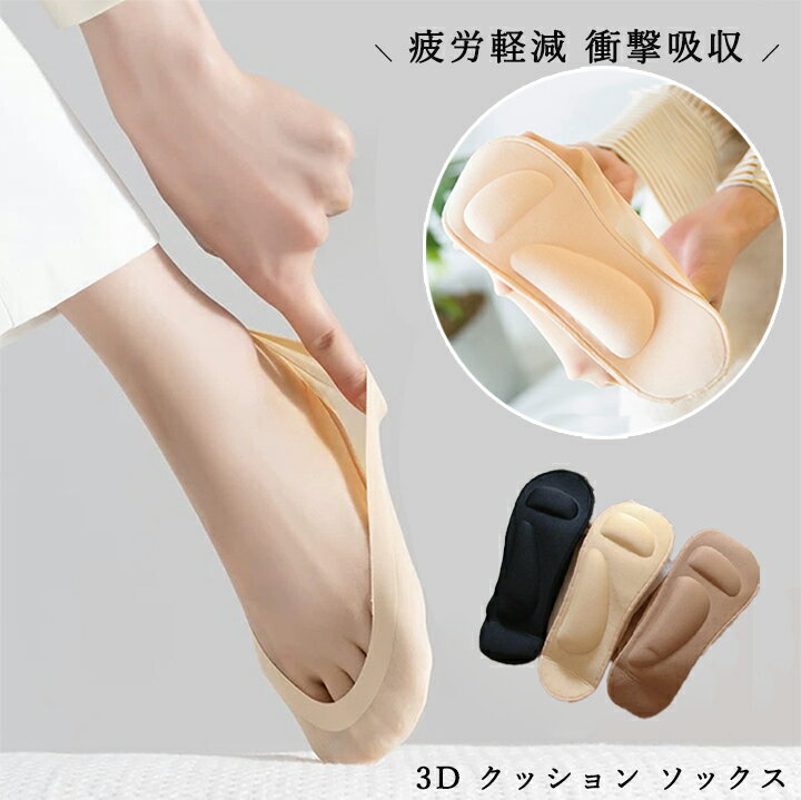 3D ボートソックス ハイヒール靴下 靴下 ソックス 三次元 スポンジ アイスシルク 滑りにくい ズレにくい