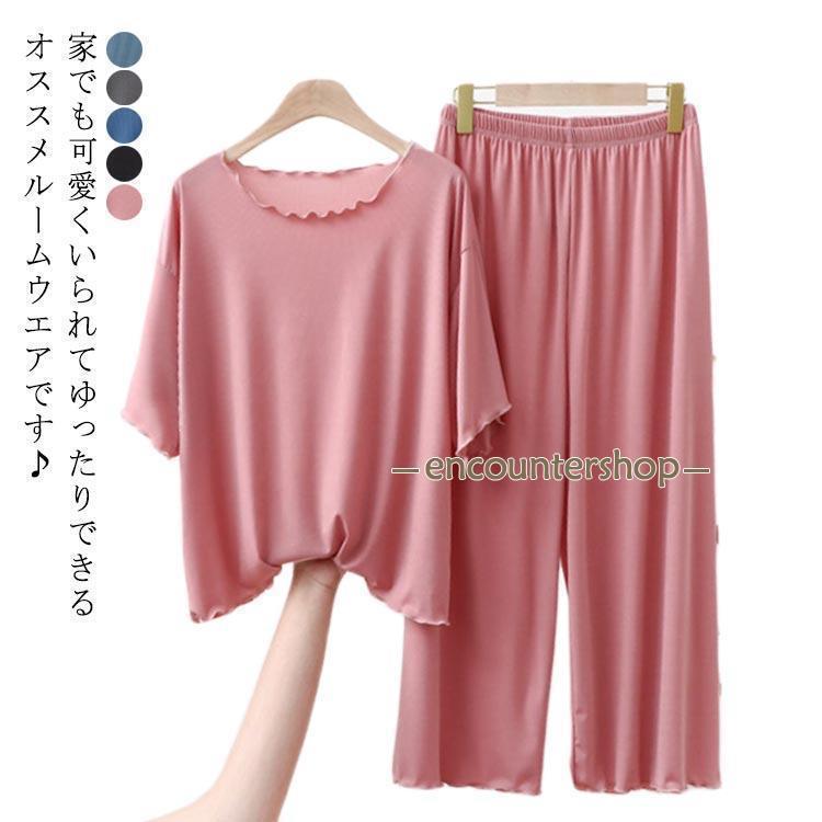 ルームウェア 夏 上下セット レディース ルームウエア 寝間着 セットアップ 半袖 大人シンプル ハイウエスト ロングパンツ パンツ パジャマ ナイト