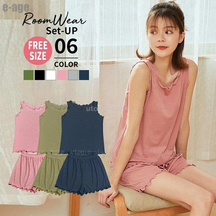 ルームウェア レディース 夏 セットアップ タンクトップ ショートパンツ 短パン 上下セット 部屋着 パジャマ ノースリーブ 綿 コットン 薄手 おしゃれ
