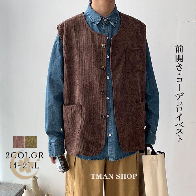 ベスト メンズ カジュアル ベスト大きいサイズ コーデュロイ 重ね着 前開き アウター ファッション 体型カバー ゆったりトップス 通学 秋新作