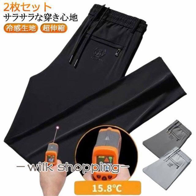 2枚セット アイスシルクパンツ 接触冷感 ロングパンツ メンズ イージーパンツ 冷感パンツ 薄手 ゴルフパンツ ウエストゴム ストレッチパンツ 伸縮性
