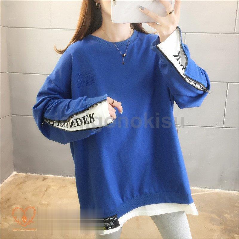 トレーナー 重ね着風 スウェット レディース トップス 秋服 プルオーバー 秋服 長袖トレーナー ゆったり 無地 クルーネック カジュアル 長袖トップス トレンド