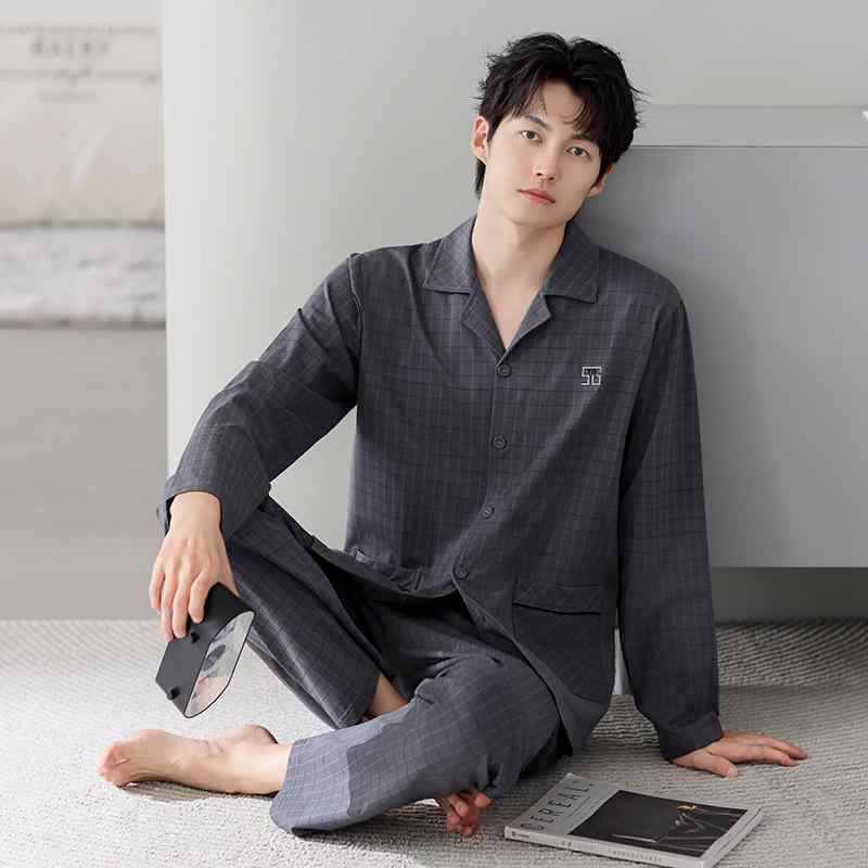 通気性に優れた薄手綿素材で春秋に最適 部屋着や外出にも使える前開き長袖セットアップ