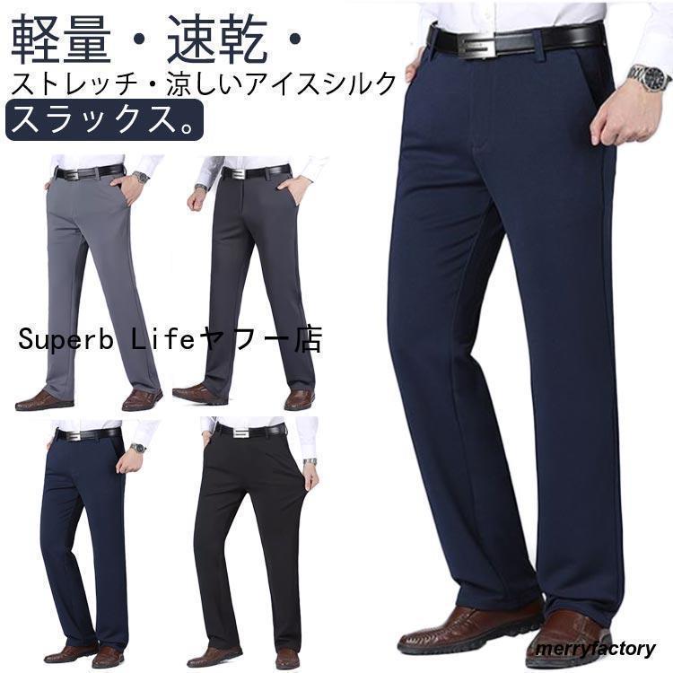 【2本セット】 スラックス メンズ アイスシルクパンツ 大きいサイズ 夏 接触冷感 ビジネスパンツ ノーアイロン ウォッシャブル ストレッチパンツ 涼