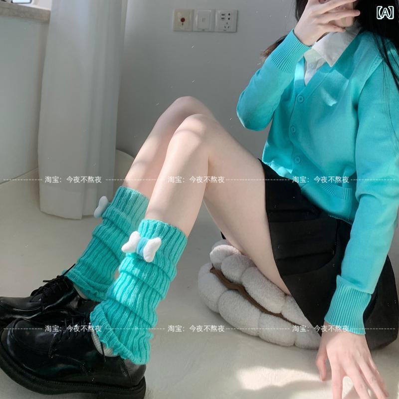 ソックス サポート カバー 今夜は 遅くまで 起きないで グリーンの ニット ソックス Y2K ボーン ウール レッグカバー 秋冬用 暖かい ミドル スタック