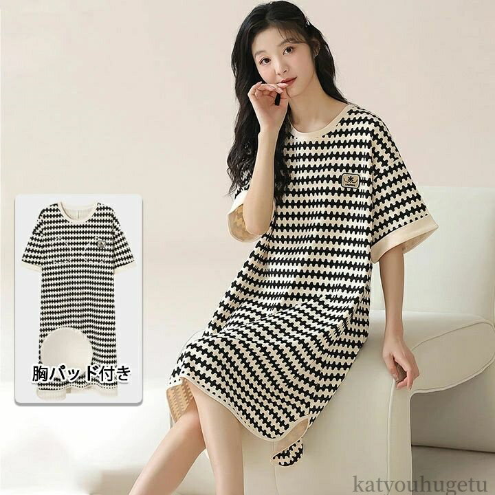 【送料無料】レディース ルーム 胸パッド付き コットン 可愛 ワ