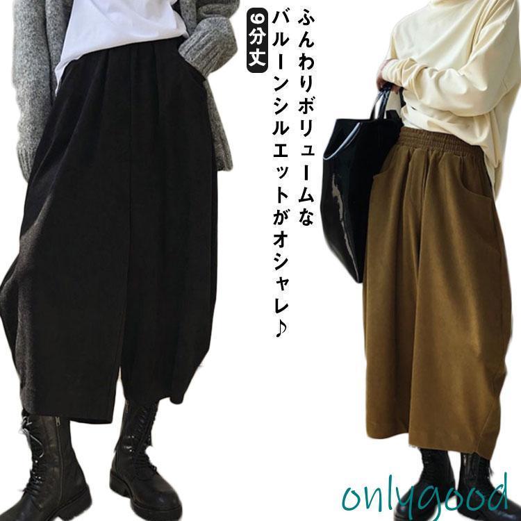 バルーンパンツ コクーンパンツ レディース 秋服 冬物 ワイドパンツ 大きいサイズ 9分丈 ゆったり お洒落 無地