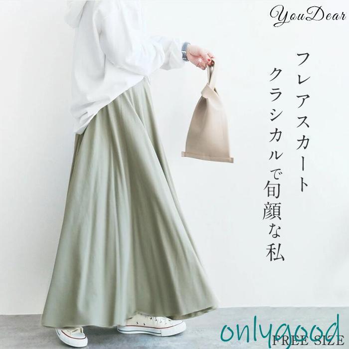 スカート 春 秋 とろみドレープ レデース ロングスカート ボトムス ウェストゴム 体型カバー お洒落 ママコーデ フレアスカート マキシスカート ゆったり