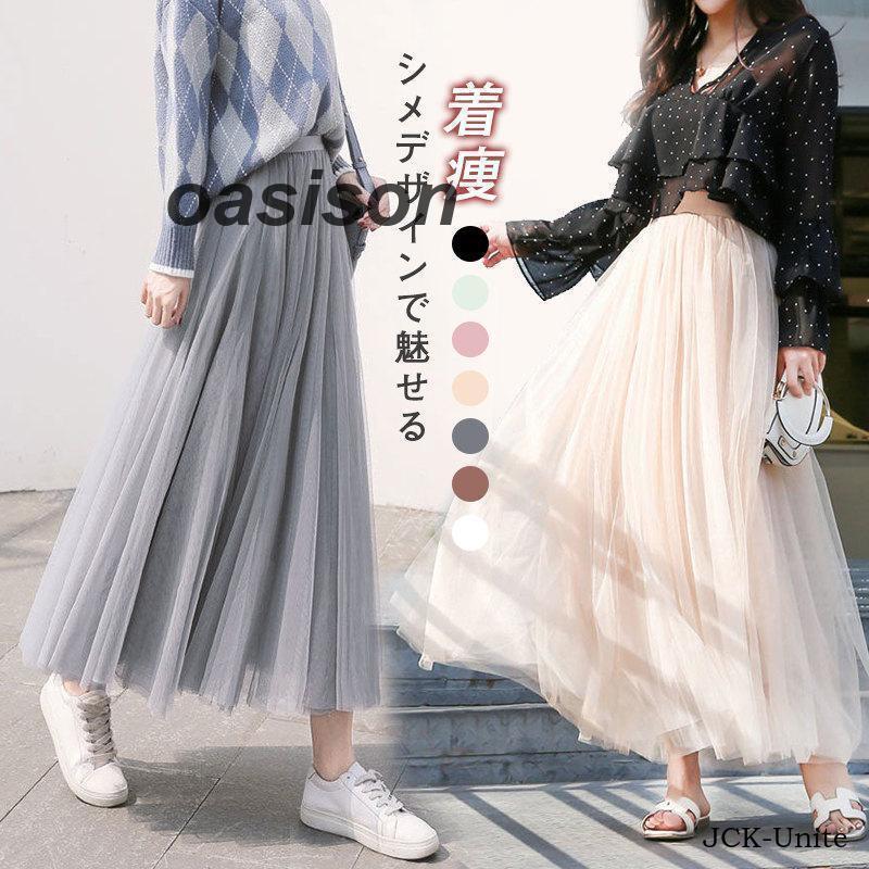 スカート レディース 厚手 秋冬 ヒザ丈 チュールスカート 膝丈 フレアスカート ミモレ丈 ミディアム丈 チュール ポリエステル おしゃれ