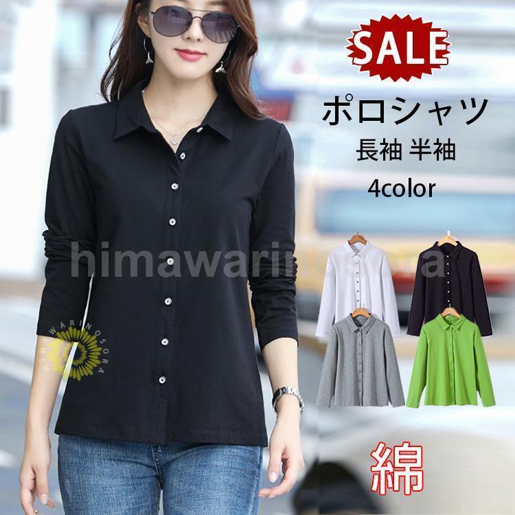 ポロシャツ レディース 長袖 トップス カットソー 大きいサイズ ゆったり 前開き 無地 介護 仕事 制服 ゴルフ スポーツ 薄手 綿 上品