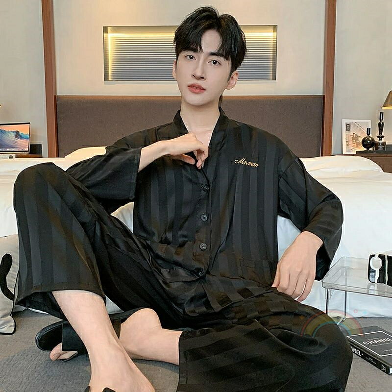 柔らかく軽い薄手の快適パジャマ シルク パジャマ メンズ 春秋 父親 誕生日 プレゼン