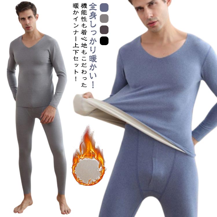 ヒートテック 防寒着 メンズ vネック 保温インナー 裏起毛 インナー上下セット
