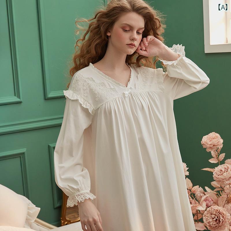 ネグリジェ 宮殿風 レディース 春秋 長袖フリル シフォン ワンピース パジャマ レース 透け感 ドレス ルーム ナイト ホームウェア