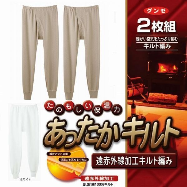 2枚組 グンゼ RP63022 保温 あったかキルト ズボン下 タイツ ももひき メンズ 紳士 綿100% 遠赤外線加工 保温力 保温肌着 厚手 あったか 下着 肌着 GUNZE