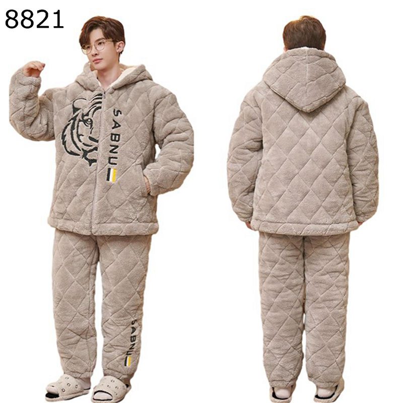 パジャマ ルームウェア メンズ 中綿キルト 冬 フード付きアウター 長ズボン 上下セット フランネル 厚手 防寒 あったか 部屋着 寝巻き モコモコ 大きいサイズ オシャレ お出掛け