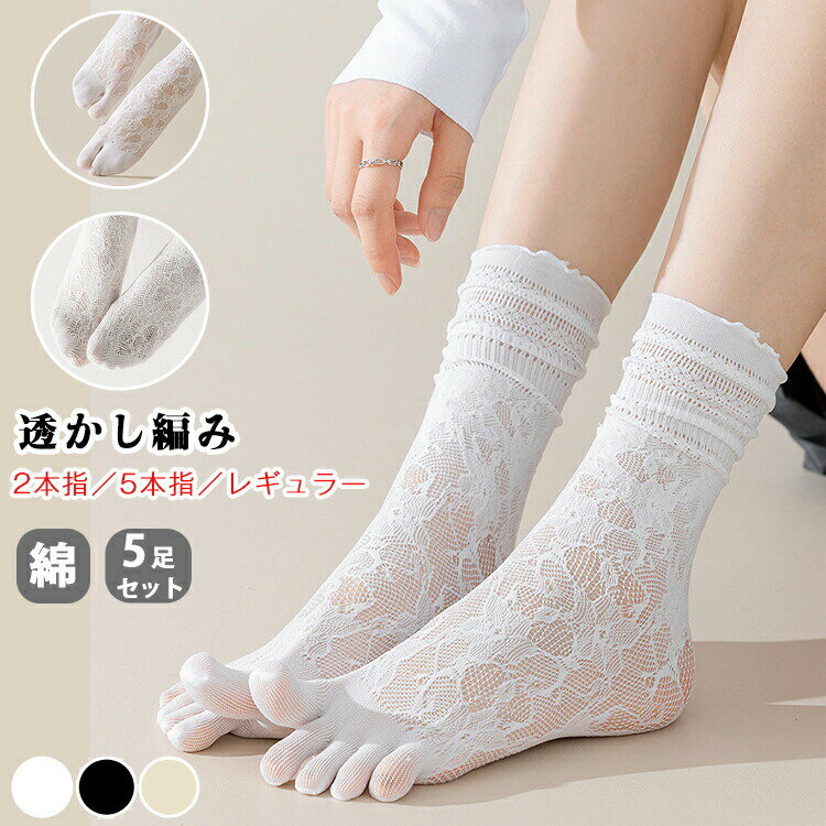 5足組 靴下 透かし雕り レースソックス 2本指ソックス 5本指ソックス レース 透かし 綿 コットン 吸汗性 消臭性 女の子 フェミニン ガーリー まとめ買い お買い得 履き替え
