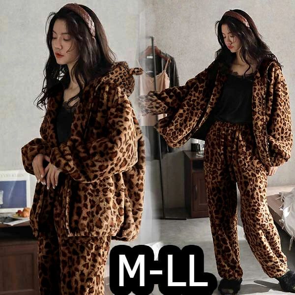 ルームウェア 寝巻き 寝間着 かわいい ヒョウ柄 セクシー 暖かい