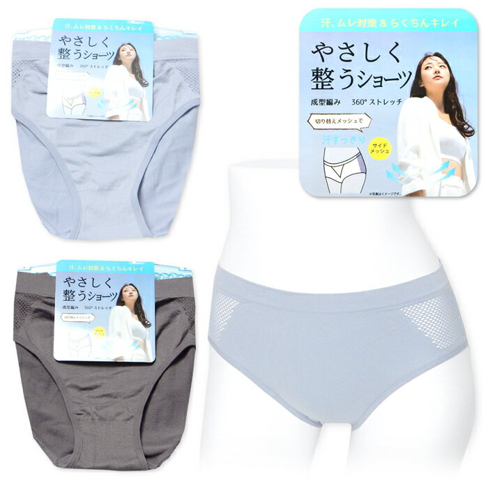 【送料無料】婦人 レディース 切替メッシュ ショーツ 汗ムレ対策 通気性 成型編み ストレッチ 肌着 下着 インナー M L LL yg-2948【メール便対応】
