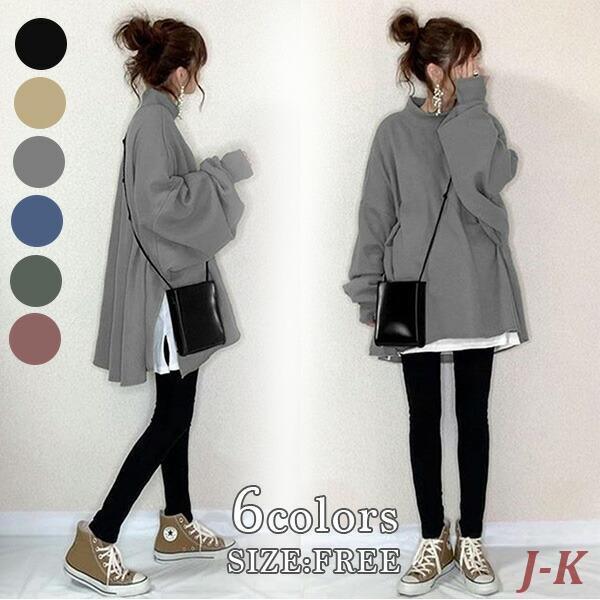 ユルカジ BIGシルエット カットソー 可愛い 長袖 オーバーサイズ トップス バルーン チュニック トップス レディース