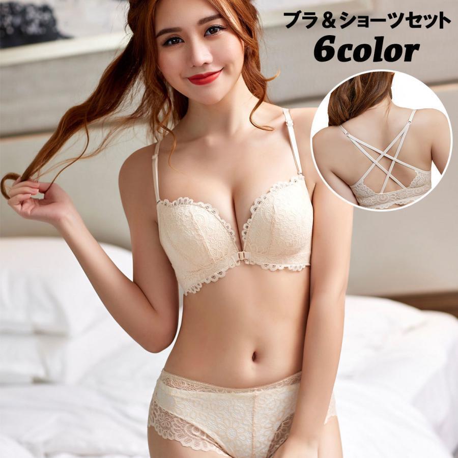 ブラジャー ショーツ 上下セット レディース 下着 3/4カップ フロントホック バッククロス ボックスショーツ レース シースルー