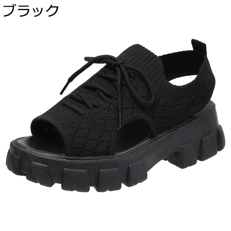 厚底サンダル レディース サマーシューズ 通気性 メッシュ ニット スポーツサンダル オープントゥ 軽量 歩きやすい 履きやすい ランニング スニーカー サンダル 夏 滑り止め カジュアル 通勤 日常