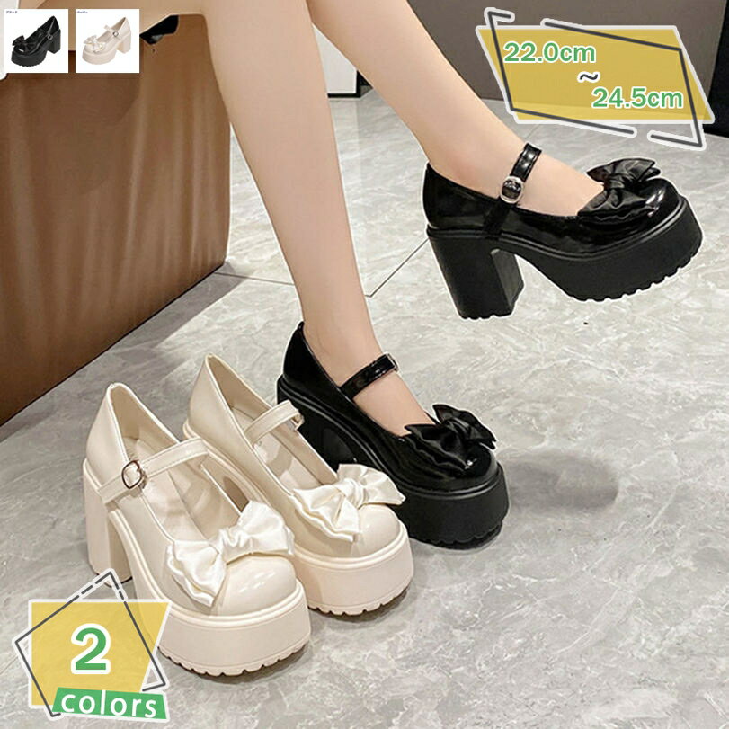 ロリータ靴 前厚 厚底 ゴスロリパンプス チャンキーヒール かわいい LOLITA コスプレ 変装 お嬢様風 メイド 靴 女子 プラットフォーム 学生靴 厚底靴 太ヒール 10センチ パンプス