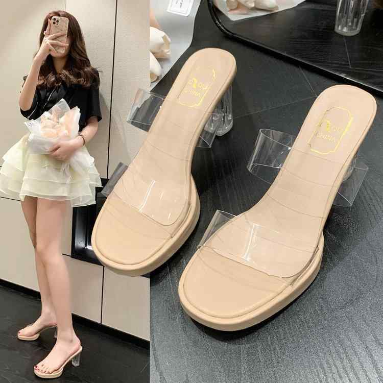 PLEASER SKY-308 プリーザー レディース 厚底 プラットフォーム アンクルストラップ クリア サンダル