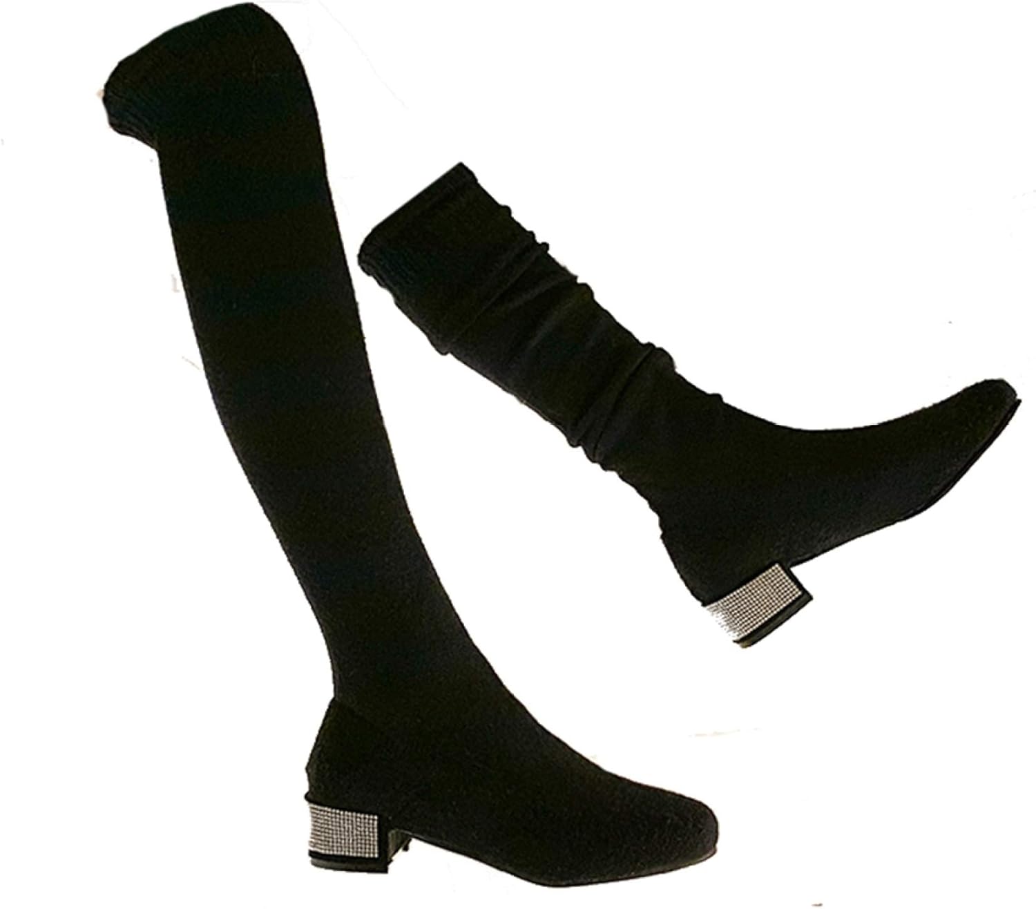 【20%OFFクーポン〜】ソックスブーツ ニーハイブーツ レディース ローヒール ロング セクシー ファッション ニット編み 秋冬 ?力性 伸縮性 ラインストーンヒール 美脚 女子力 細見え エレガント ブラック グレー