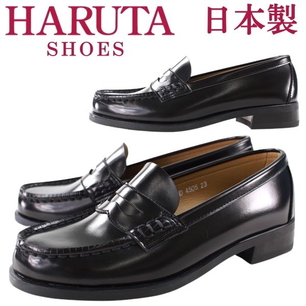 ハルタ 【サイズ交換無料】 HARUTA ローファー 4505 レディース 幅広 3E 日本製 学生 学生靴 通学 高校生 中学生 靴 黒 ブラック コインローファー 歩きやすい 指定靴 定番