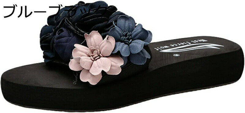 厚底サンダル レディース 夏用スリッパ ビーチサンダル 花付き 美脚効果 エレガント キレイめ おしゃれ ウェッジソール ローヒール 3cm フラットシューズ ビーチサンダル 滑り止め 安定感 通気性 履きやすい デイリー