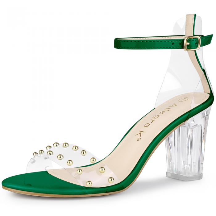 Allegra K アンクルストラップ サンダル 透明 クリアブロックヒール レディース グリーン 26.0 cm