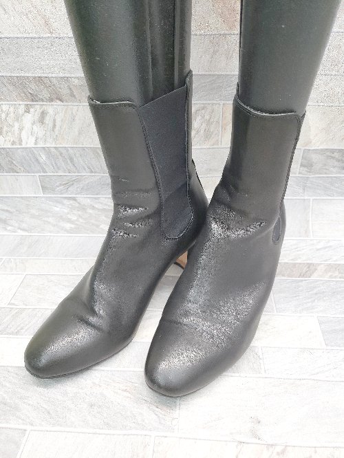 ◇ APOM アポム サイドゴア ショート ヒール ブーツ サイズ38 ブラック レディース P 【中古】
