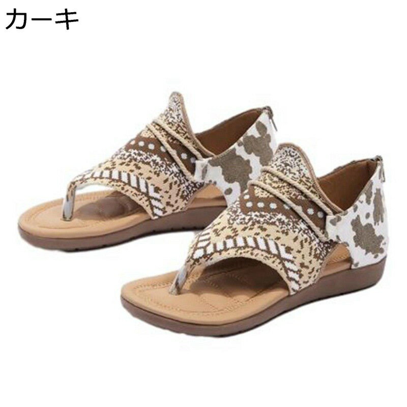 トングサンダル エスニック レディース サンダル バックジップ ニット フラット 夏用 ウォーキングシューズ 運動靴 防滑 軽い 防水 歩きやすい 軽量 かわいい 牛柄 スポーティ コンフォート レジャー
