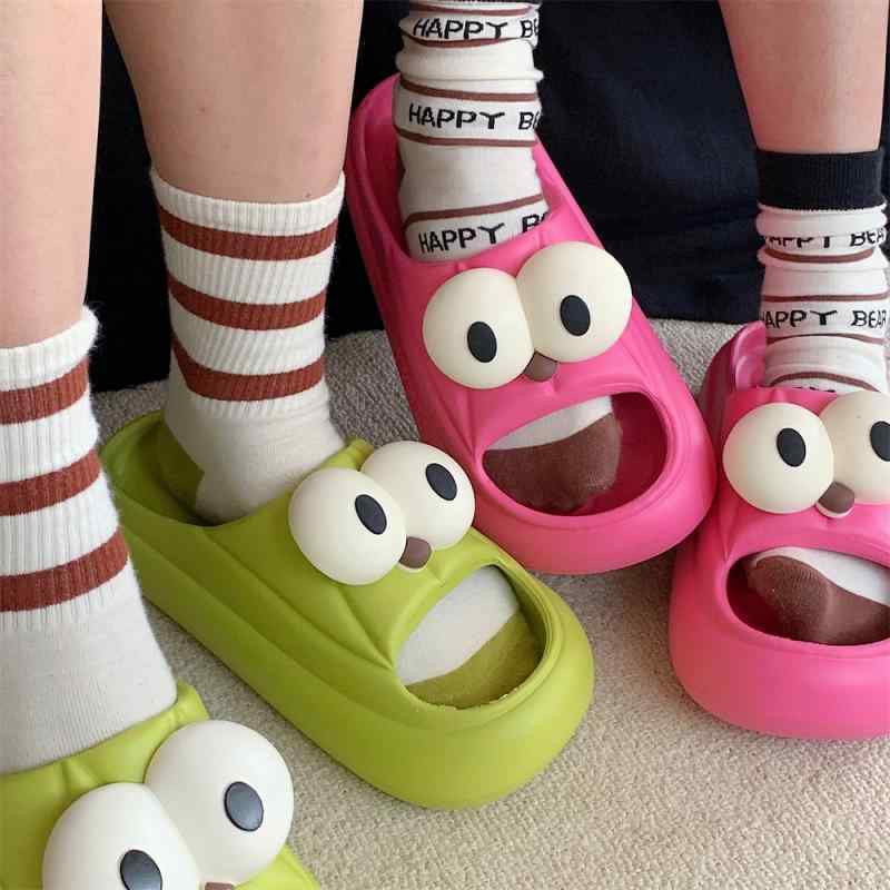 スリッパ おもしろ かわいい 大きい 目 メンズ レディース アウトドア スリッパ 夏 滑り止め 柔らかい 厚底 カップル スリッパ ミディアムヒール