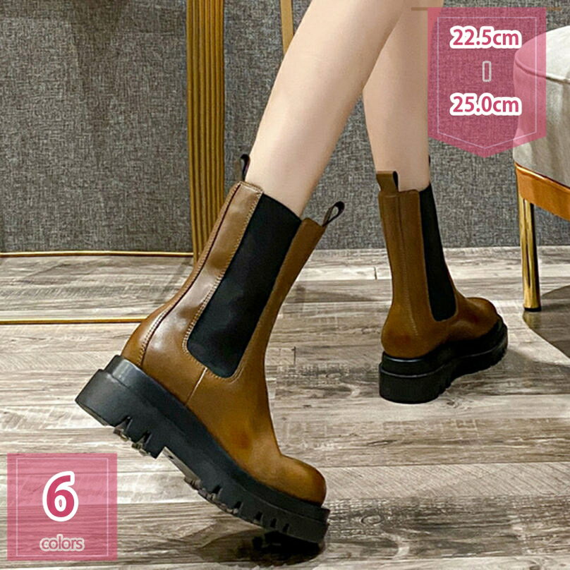 レディースシーブーツ カジュアル 本革 秋冬靴 厚底 美脚 おしゃれ 歩きやすい ブーツ チェルシーブーツ レディース サイドゴア 厚底靴 ラウンドトゥ 身長アップ 脚長効果 冬 秋