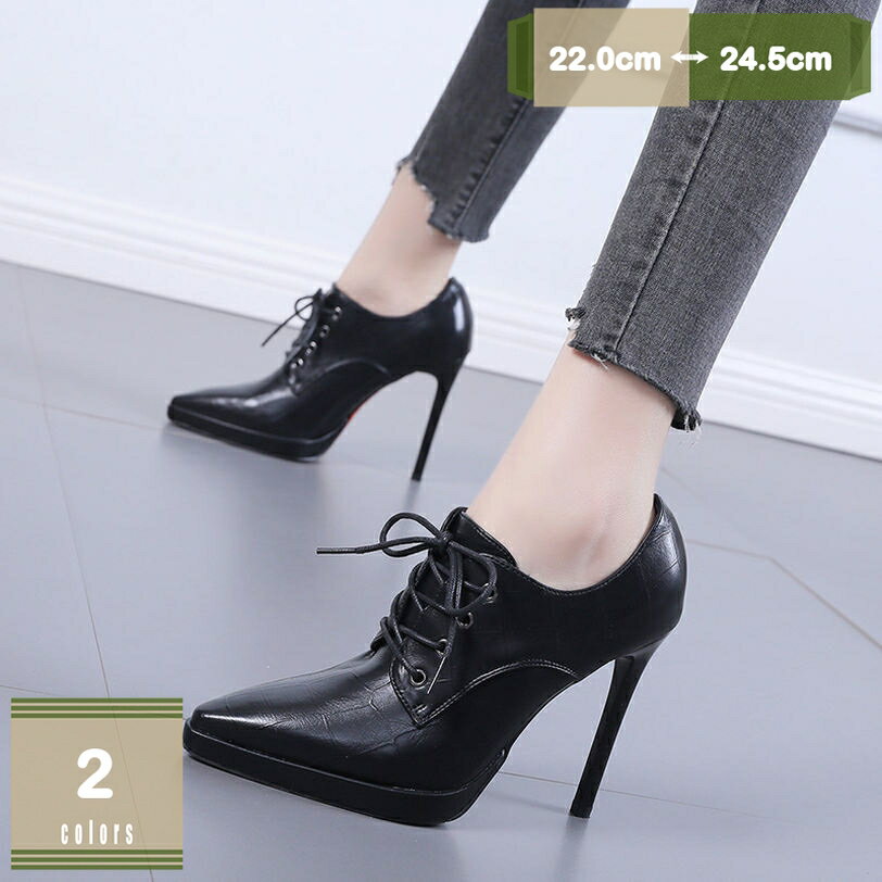ブーツ レディース ショートブーツ ショート丈 ブーツ ピンヒール 10cmヒール 美脚 ブーティー カジュアルシューズ ブラック レースアップ 黒 編み上げブーツ 安定感 防水 防滑