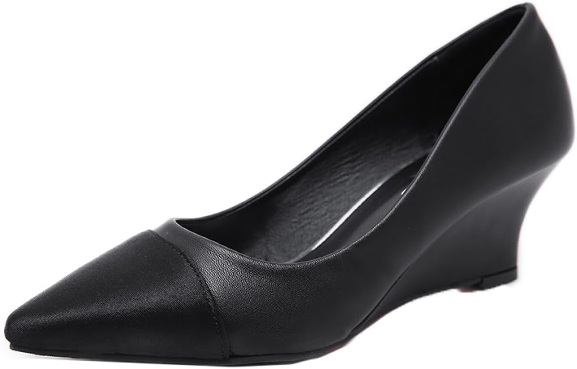 きれいめ パンプス ラウンドトゥ 安定感のある ウェッジソール ヒール 7.5cm 歩きやすい クッション レディース サイズ交換可 小さいサイズ 大きいサイズ パンプス 美脚 カラーマッチング ブラ