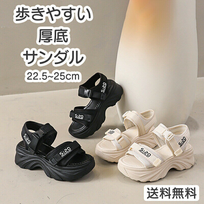 厚底サンダルレディース軽量歩きやすいベルクロスポーツサンダルレディース厚底アウトドア旅行スポサン春夏ヒール6CMビーチスリッパ美脚靴送料無料