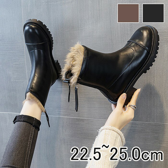 22.5cm〜25.0cm 厚底 ショートブーツ サイドジップ 秋冬 暖かい あったかシューズ