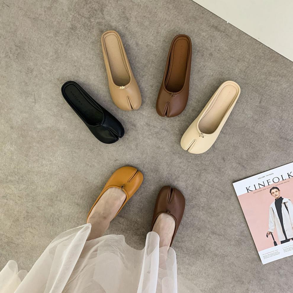 送料無料 パンプス 足袋パンプス 足袋スリッパ フラットシューズ ぺたんこ バレエシューズ風 ミュール風 サンダル風 レディース 女性用 先割れ たび レザー調 ナチュラル かかと無し シンプル カジュアル かわいい