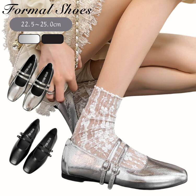 ストラップ 歩きやすい 柔らかい 可愛い メリージェーン靴 フラットシューズ レディース PUレザー 美脚 学生 卒業 おしゃれ 黒 銀色