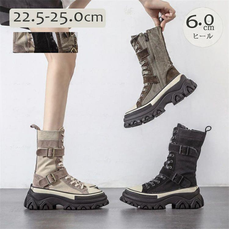 韓国 スニーカー 編み上げ スニーカーブーツ ロング ニーハイブ