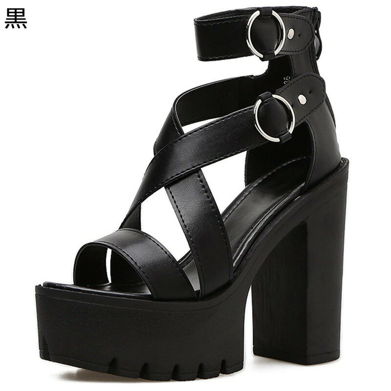 サンダル キャバ ストーム付き ストラップサンダル バックファスナー 大きいサイズ 甲ストラップ ハイヒール レディース ラウンドトゥ ラウンドトゥ 粗いかかと オシャレ 女性用 夏靴