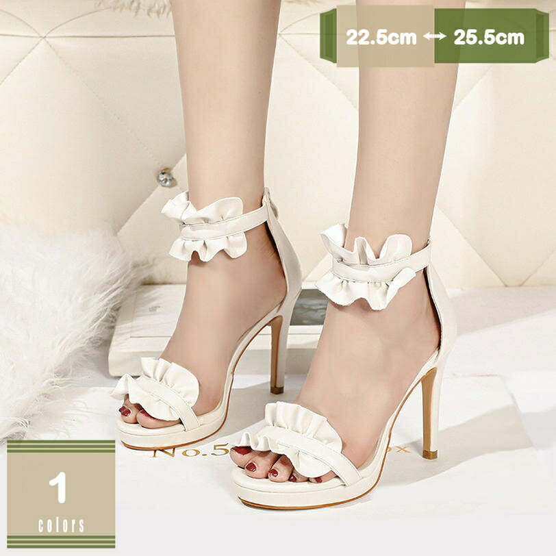 ストラップサンダル 厚底パンプス ピンヒール フリル レディース ハイヒール10.5センチ 大きいサイズ アンクルストラップ 歩きやすい 結婚式 疲れない プラットフォーム ストーム